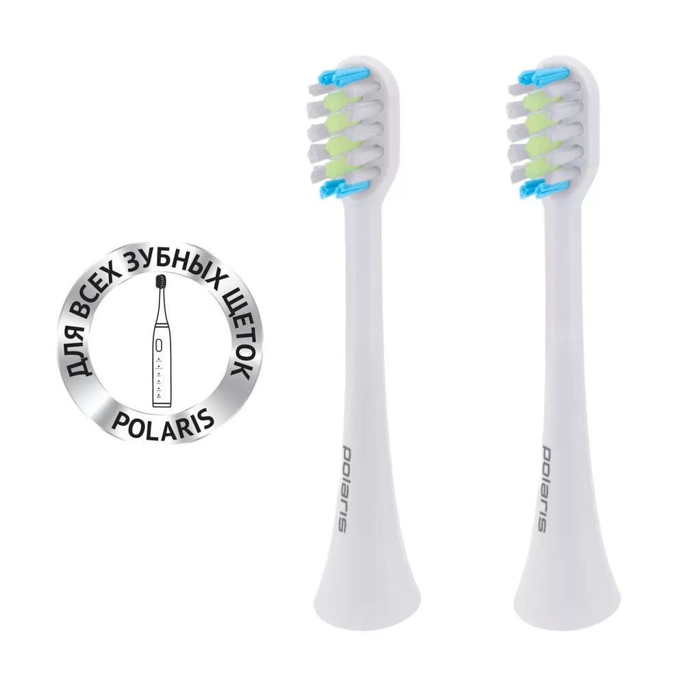 Комплект TBH 0105 M (2) из двух насадок со щетиной средней жесткости подходит для любой зубной щетки Polaris.