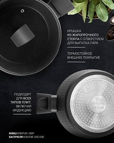 Кастрюля с крышкой Polaris Kontur-24C