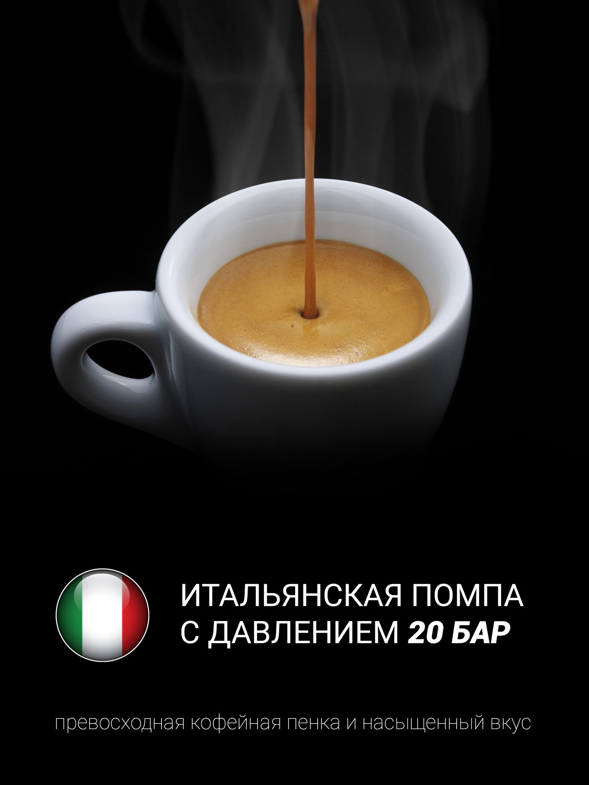 Итальянская помпа с давлением 20 бар.
