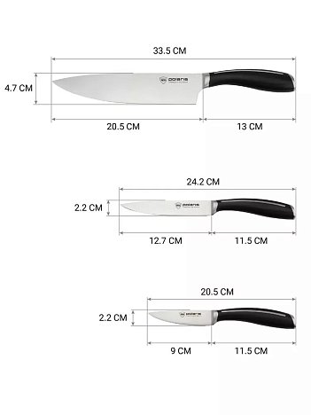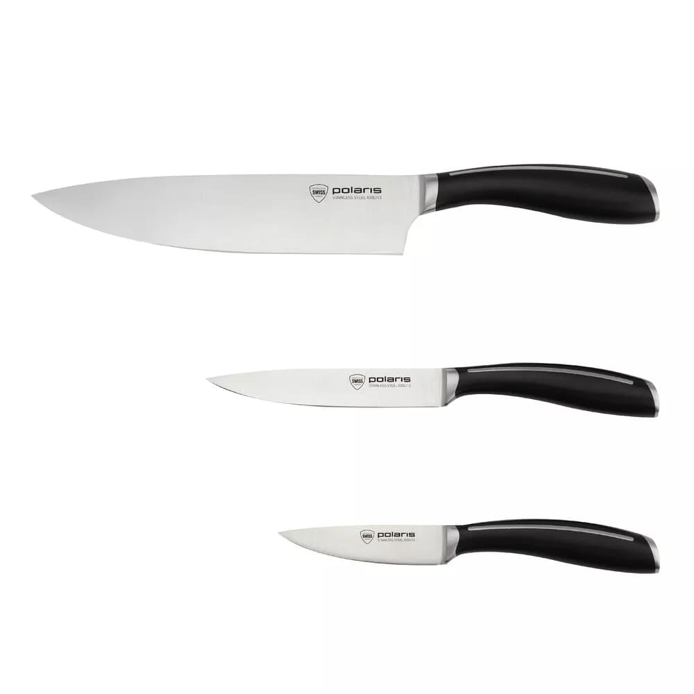Преимущества набора ножей Polaris - двусторонняя заточка лезвий. Благодаря этому, ножи позволяют вам быстро и аккуратно нарезать продукты. Материал изделий - нержавеющая сталь X30Cr13, что гарантирует его долговечность и стойкость к коррозии.