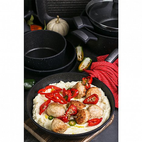 MEGASTONE PRO-5 Инновационное 5-слойное антипригарное покрытие с керамической крошкой.