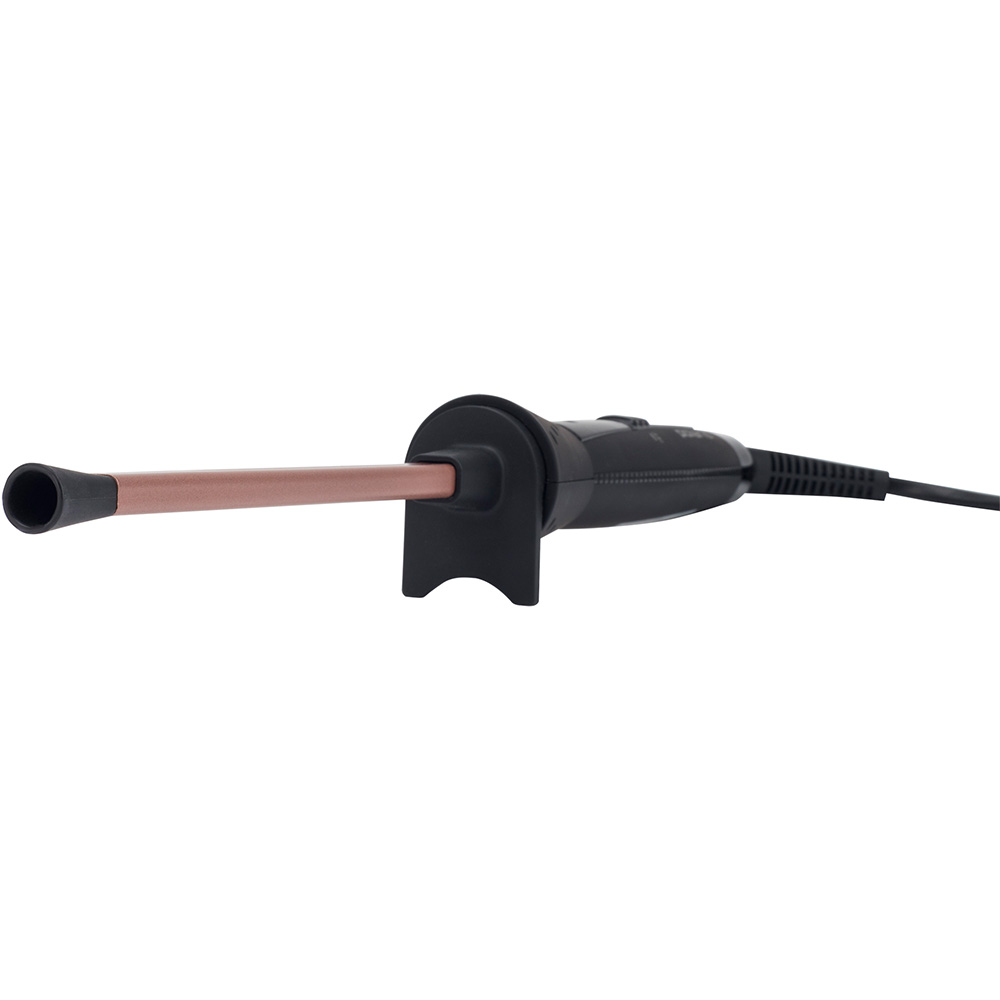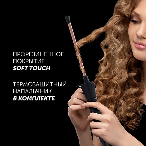 Чтобы не обжечься в процессе создания прически, на конце плойки предусмотрен термозащитный напальчник. Очень удобен шарнирный механизм шнура в том месте, где он сочленяется с корпусом. Благодаря ему шнур имеет возможность вращаться вокруг себя, не запутываясь и не скручиваясь.