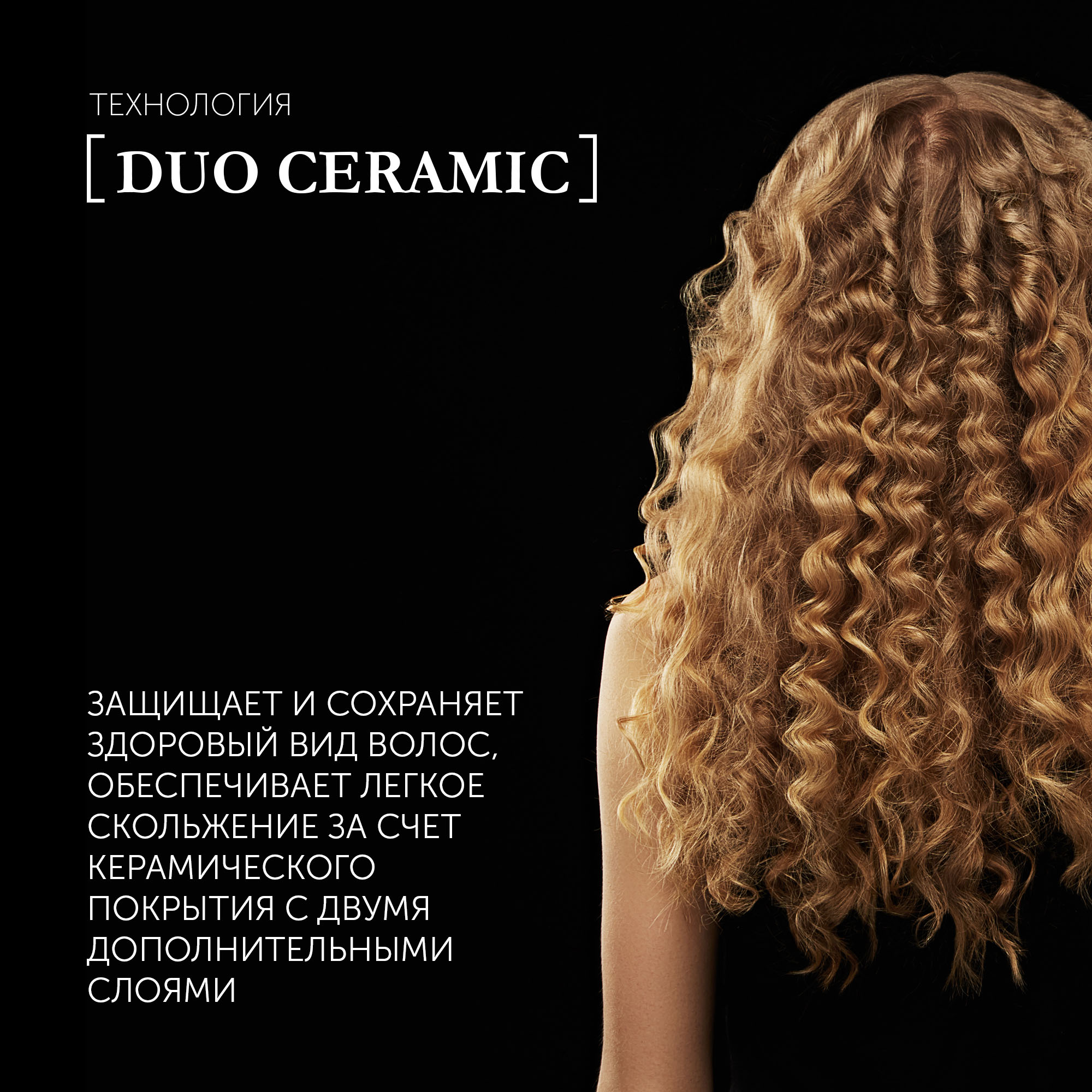 Технология DuoCeramic защищает и сохраняет здоровый вид волос, обеспечивает легкое скольжение за счет керамического покрытия с двумя дополнительными слоями.